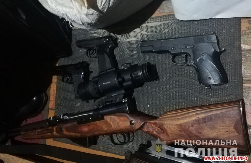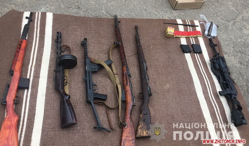 «Поліцейські провели понад 10 обшуків за місцем проживання жителів обласного центру та Житомирського району. У приміщеннях виявили 20 одиниць зброї, у тому числі нарізну та перероблену, та близько трьох сотень набоїв до неї. Попередньо, фігуранти провадження, віком від 30 до 50 років, мають навички поводження зі зброєю. Упродовж певного періоду вони займалися скуповуванням зброї часів ІІ Світової війни, а також її пошуком у місцях запеклих боїв. У подальшому пістолети, рушниці та автомати ремонтувались, приводилися до бойового стану з метою продажу зацікавленим особам», – йдеться у повідомленні.