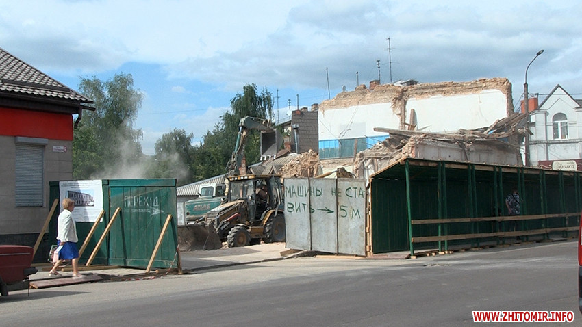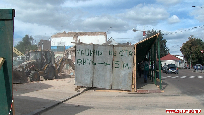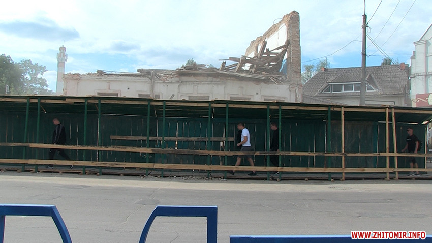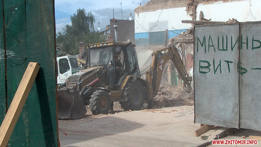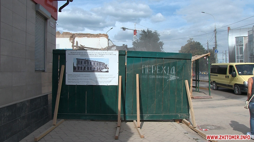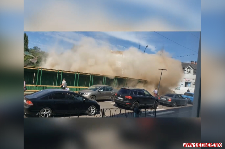 У Житомирі на вулиці Івана Кочерги 4 вересня під час демонтажу будівлі колишньої вечірньої школи стіна впала на дорогу, поваливши частину огорожі.