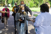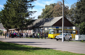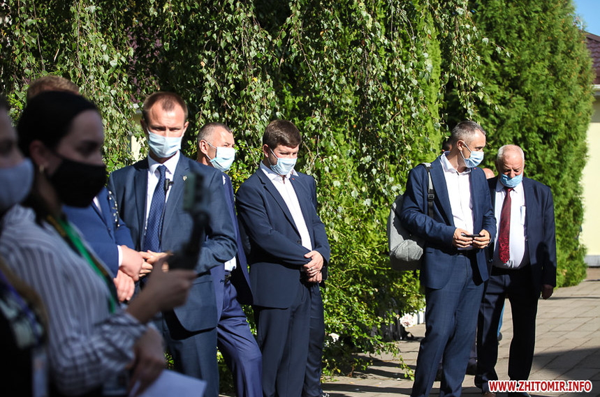 Нагадаємо, в державному університеті «Житомирська політехніка» ввечері 8 вересня проходить презентація Стратегії розвитку Житомирської області, а після цього почалося представлення кандидатів на місцевих виборах від провладної партії «Слуга народу». Володимир Зеленський приїхав до політехніки після 17:30, Напроти університету з 16-ї години стояли кілька десятків людей з плакатами,