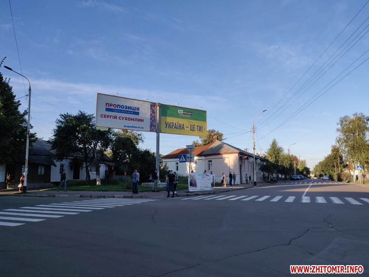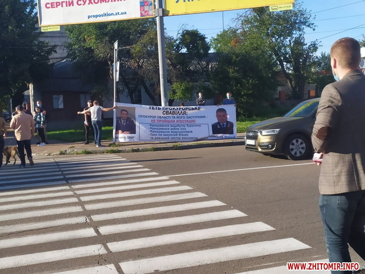 Після завершення в державному університеті «Житомирська політехніка» презентації Стратегії розвитку Житомирської області, Володимир Зеленський близько 18:40 приїхав до музею, де на нього після 17:00 вже очікували кілька людей з плакатом «Геть прокурорське свавілля: прокурор області та його заступник не пройшли атестацію». Зазначимо, що журналістів акредитували тільки на заходи за участю президента в ОТГ та політехніці.