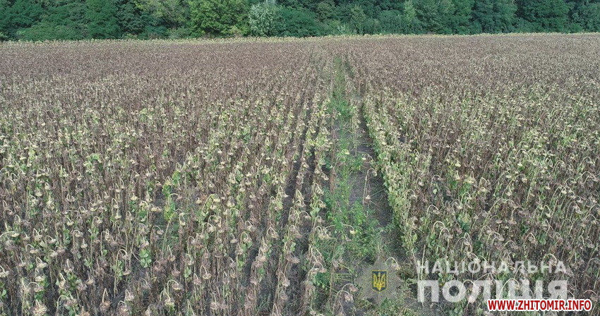 «9 вересня у Бердичівському районі працівники поліції за допомогою аеророзвідувальної техніки виявили у соняшниковому полі конопляні насадження та зібрану й висушену нарковмісну сировину. З місця події вилучені загалом понад 3 тисяч рослин коноплі та до десятка кілограмів сухого зілля. Розпочато кримінальне провадження», - повідомили в поліції.