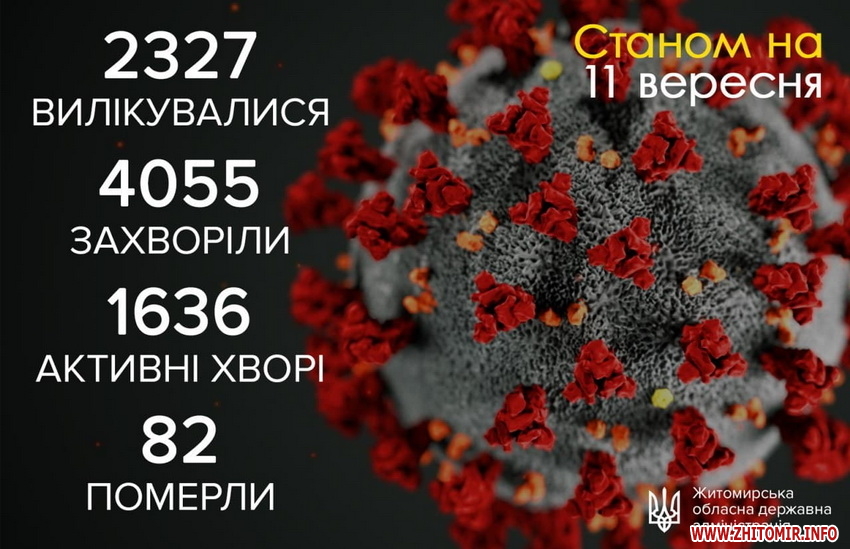 Нагадаємо, станом на ранок 11 вересня у Житомирській області підтверджено 4055 випадків COVID-19, за добу зафіксовано антирекорд – 117 нових лабораторно підтверджених випадків. Також від коронавірусу померли 64-річна жителька Малинського району та 79-річний житель Коростенського району.