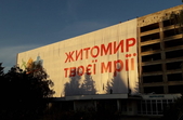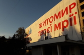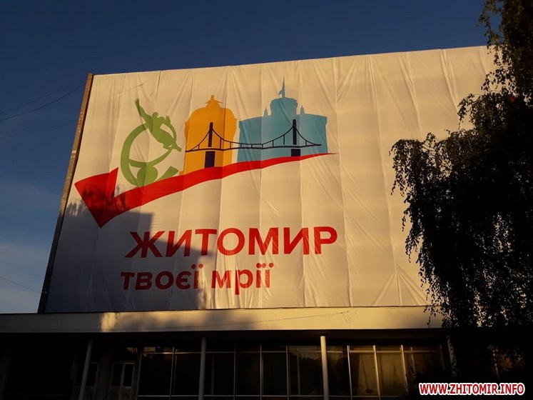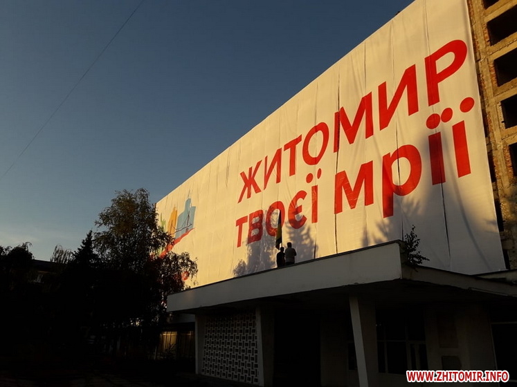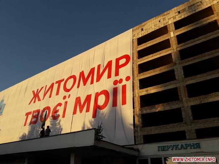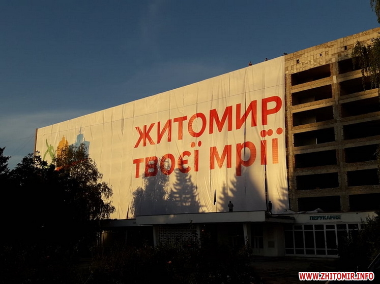 В п’ятницю, 11 вересня, на будівлі готелю «Житомир», що знаходиться на майдані Перемоги, почали вішати величезний банер зі словами «Житомир твоєї мрії».