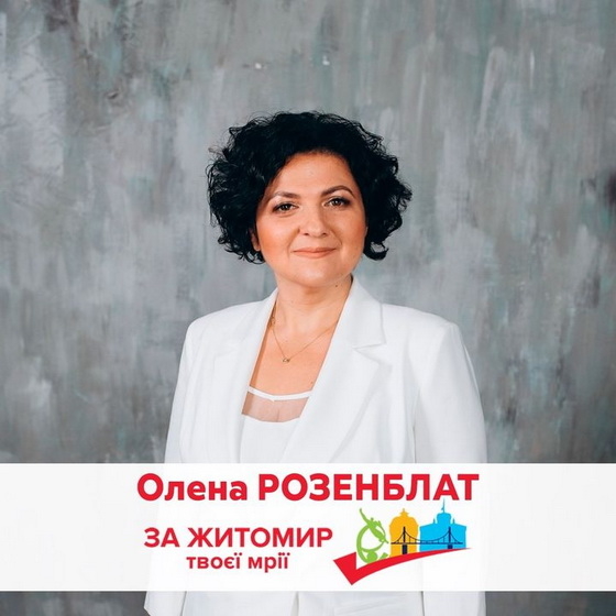 Ці слова та картинку-логотип використовує у своїй передвиборчій агітації Олена Розенблат, яка збирається балотуватися на посаду мера Житомира від ВО «Батьківщина».