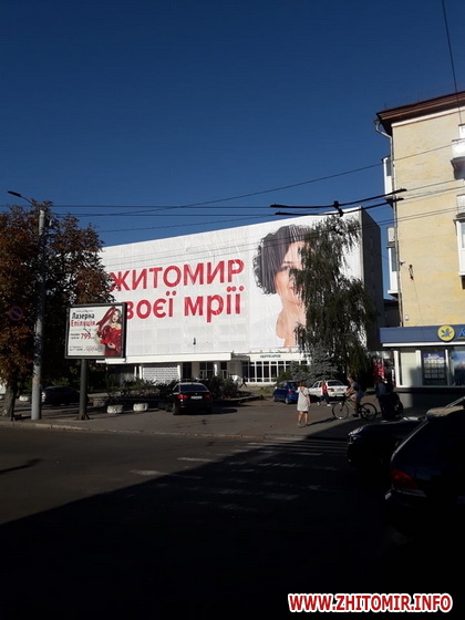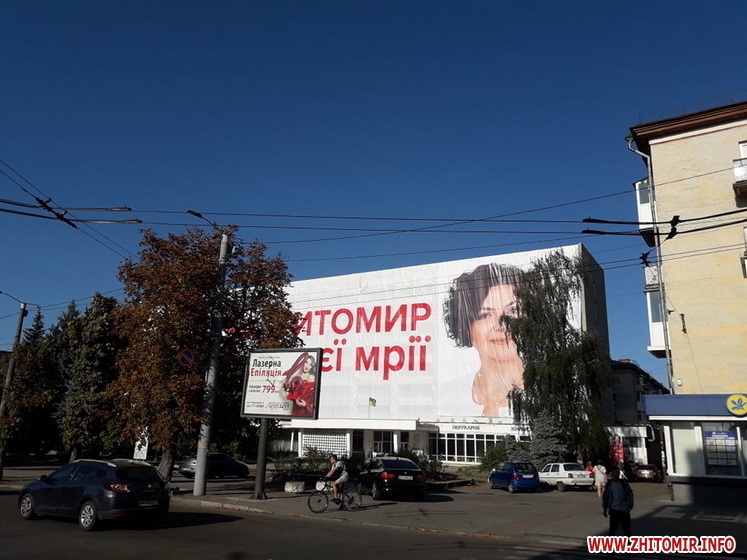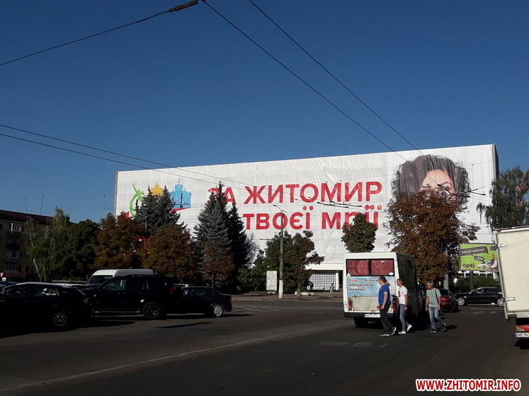 Нагадаємо, 11 вересня на будівлі готелю «Житомир» почали вішати величезний банер зі словами «Житомир твоєї мрії» та картинкою-логотипом, які використовує у своїй передвиборчій агітації Олена Розенблат. В міській раді зазначили, що звернень та дозволів на розміщення цього банеру не було.