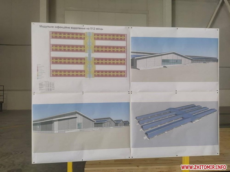 Акредитованих житомирських та коростенських журналістів на ці заходи не пустили, але після майже двогодинного очікування дозволили оглянути підготовлені до приїзду Шмигаля презентаційні стенди, де демонструється модульні інфекційні відділення на 512 місць, які можуть виготовляти на коростенському заводі.