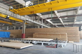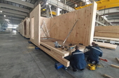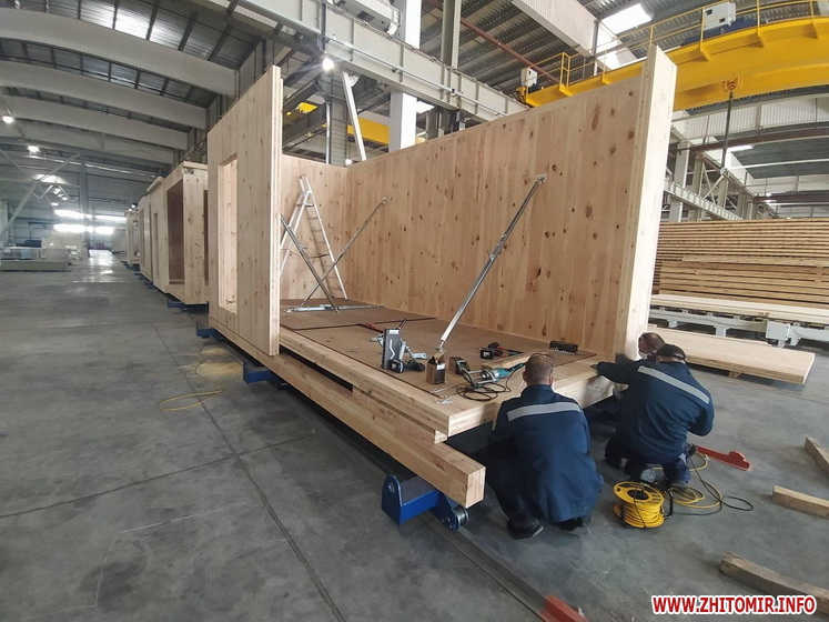 «Ці блоки виготовлені з CLT-панелей, тобто це перехресна клеєна деревина. Такі панелі використовуються в основному для будівництва будинків. Панель може бути 3-5 шарів, використовується лише деревина сосна, панелі можемо випускати по товщині від 60 до 360 мм, ширина від 240 до 3500 мм, по довжині може бути мінімум 5-метрова, максимум 18-метрова. Збір одного модуля із CLT триває 3-4 години, модуль – це одна кімната. Модуль інфекційного відділення – це поки що лише проєкт», - пояснив начальник цеху з виготовлення CLT-панелей.