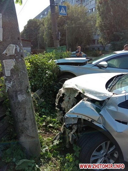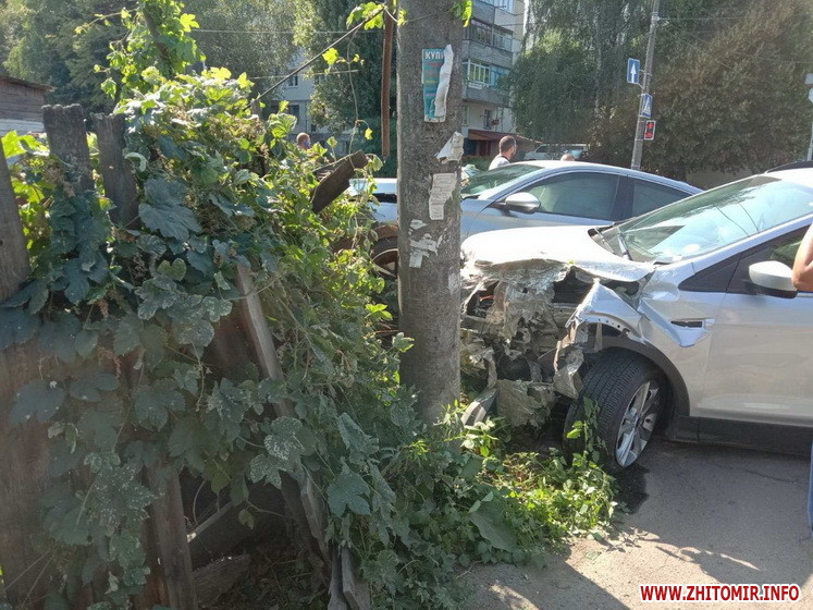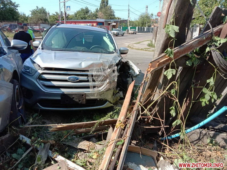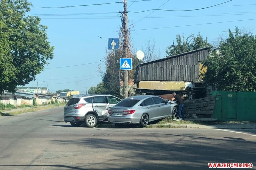 На перехресті вулиць Мазепи і Домбровського в Житомирі 15 вересня два автомобілі в’їхали у паркан приватного будинку.
