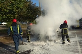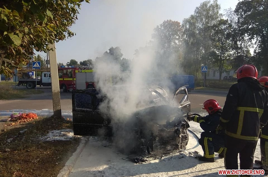 У місті Коростень Житомирської області 16 вересня рятувальники гасили палаючий автомобіль.