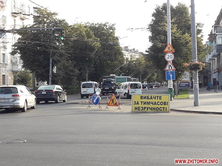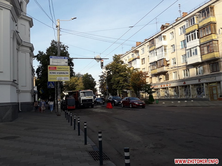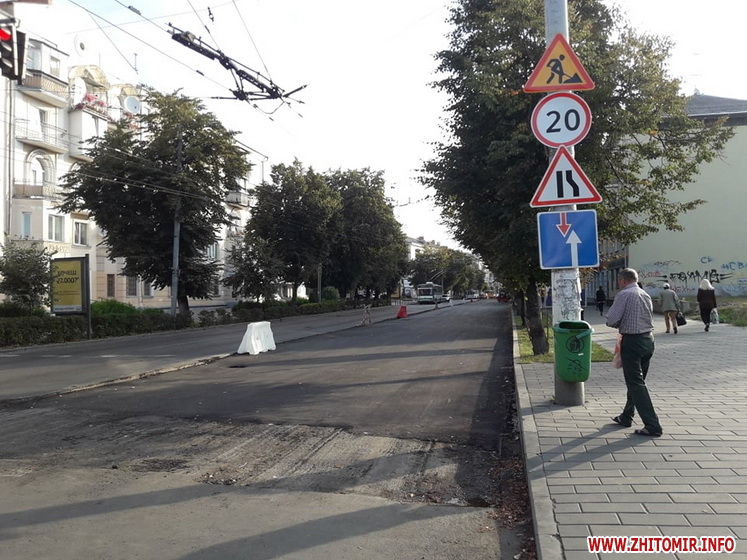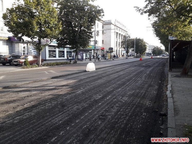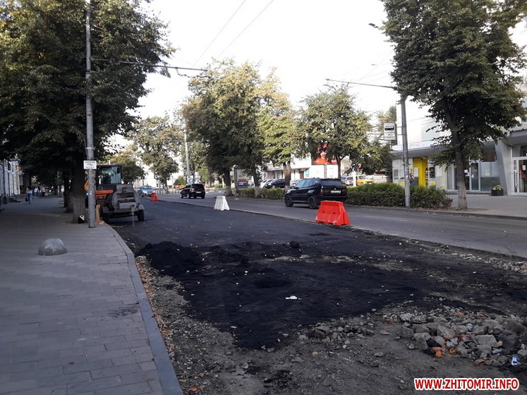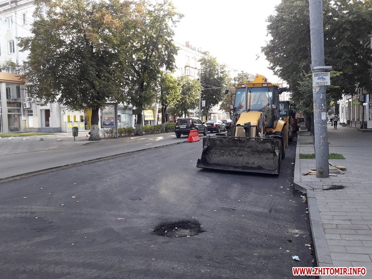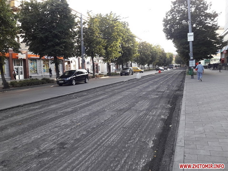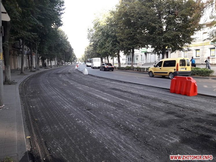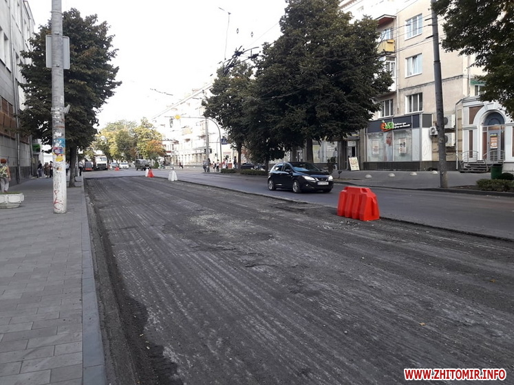 У Житомирі підрядна організація, яка виконує капітальний ремонт вулиці Київської, ще не завершила роботи на відрізку від Театральної до Покровської й вже зрізала асфальт на наступній частині Київської.