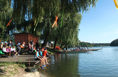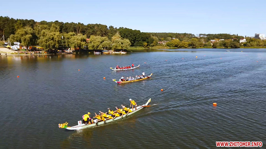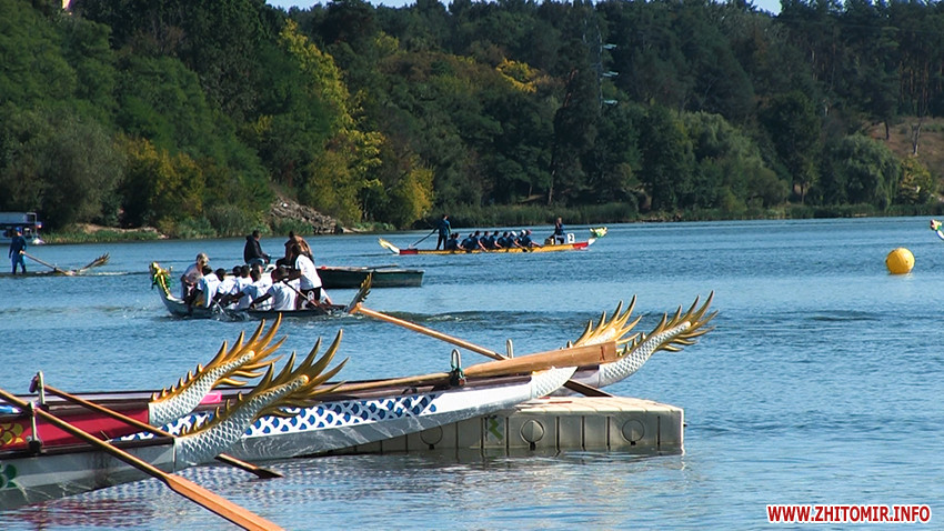 Бій барабанів, шалена боротьба на дистанціях та підтримка вболівальників - так динамічно проходять заїзди на всеукраїнських змаганнях з веслування на човнах «Дракон», які 19 вересня стартували в Житомирі. За нагороди змагаються п’ятсот учасників з дев’яти областей України.