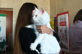«Ми приїхали з Києва. Цьому коту чотири місяці, ми виступаємо у класі котят, відповідно це наша друга виставка. Обов'язково потрібно купати котика, будь-яку тварину і кошенятко перед виставкою, особливо персів. Тому що дуже важливо, щоб він мав гарний вигляд і шерсть була пухнаста та грала у експертів на руках. Обов'язкового беремо гребінець з собою та махалки, до яких вони звикли, щоб їм було спокійно грати, як і вдома. Та й перед тим, як ми виносимо до експертів, щоб вони розігрались, адже обов'язково вони мають показувати свій темперамент, грати на рингу, бути активними, не спати. Це один з основних критеріїв, крім породних показників, які є дуже важливими для експертів», - каже учасниця виставки Вікторія Палатна.