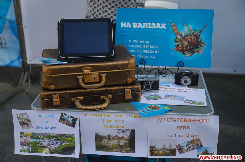 Туристичні агенції міста облаштували окремі локації з фотозонами. Тут можна детально дізнатися про діяльність компаній, обрати собі тур, сфотографуватися на квадроциклах, пограти у ігри. Презентує свою діяльність і національний музей космонавтики імені Сергія Корольова.