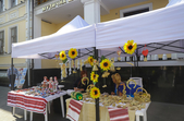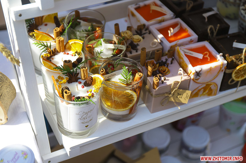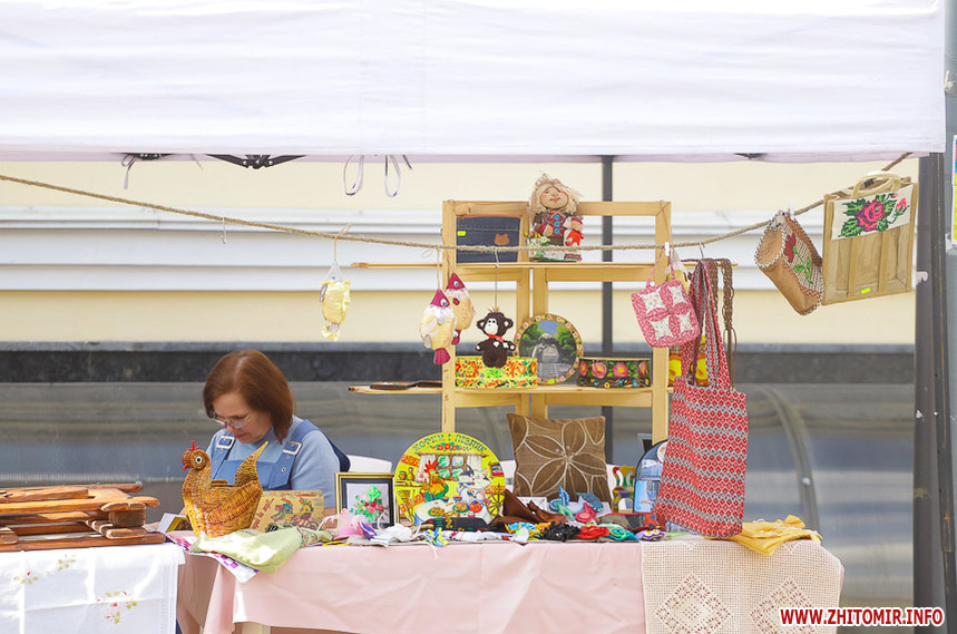 Майстри народної творчості експонують та продають свої роботи: прикраси, ляльки, свічки та інше.