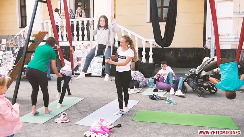 Вперше у Житомирі 26 вересня відзначали національний «Фітнес день». На пішохідній вулиці Михайлівській житомирян та гостей міста очікували показові виступи спортсменів, спільні тренування та майстер-класи.
