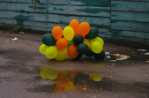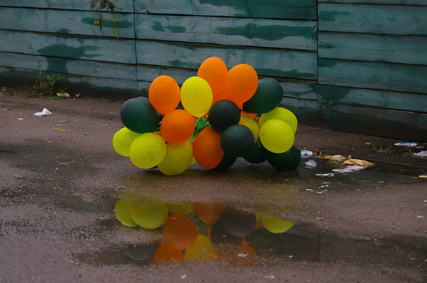Яскравих кольорів похмурому дню додають барвисті парасольки і квіти, які ще досить буйно цвітуть на клумбах.
