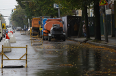 Приблизно опівдні доволі інтенсивний дощ ущух та перейшов у мжичку. Змоклі дворові собаки й коти вийшли з укриттів у пошуках їжі.