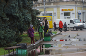 Дощовий ранок 30 вересня змусив майже всіх надягнути куртки та взяти парасольки. Дехто навіть взув тепле зимове взуття. Але де-не-де все ж можна зустріти відчайдухів у шортах, футболках і літніх капцях. Видно, ніяк не хочуть відпускати літо. Хоча годинник на майдані Соборному показує вже не літні +12°C.