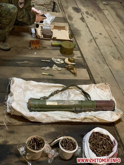 За інформацією прокуратури Жтомирської області під час обшуків виявлено арсенал вогнепальної зброї та боєприпасів до неї, зокрема: корпуси гранат, підривачі, запал, електродетонатор, протипіхотну міну,тротилові та димову шашки, понад 1800 набоїв різного калібру, дрібнокаліберну рушницю, які зберігалися без передбачених законом дозволів.