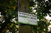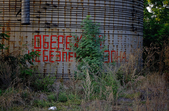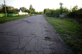 Ще на в’їзді у село збереглися старі господарські споруди. Тут великими червоними літерами написано “обережно, небезпечна зона”.
