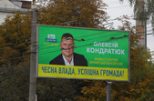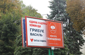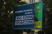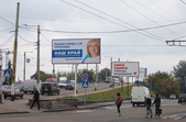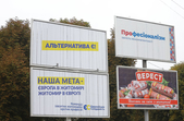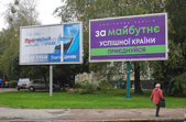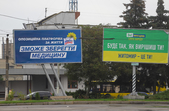 Здається, що зі щитів практично зникла комерційна реклама – більшість носіїв популяризують того чи іншого кандидата або партію, які обіцяють порядок, закликають приєднуватися, говорять про зміни на краще тощо.