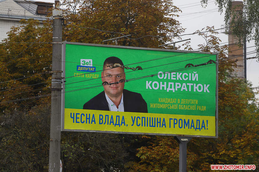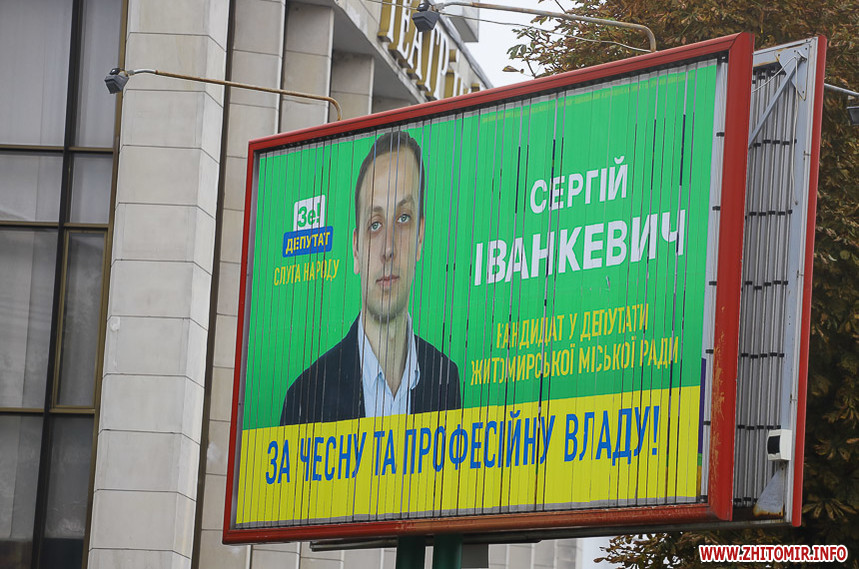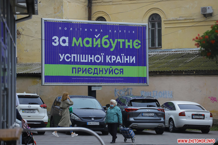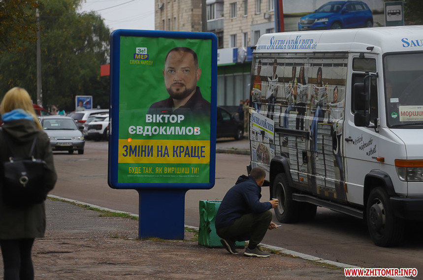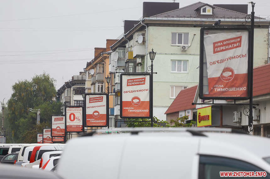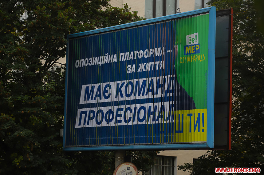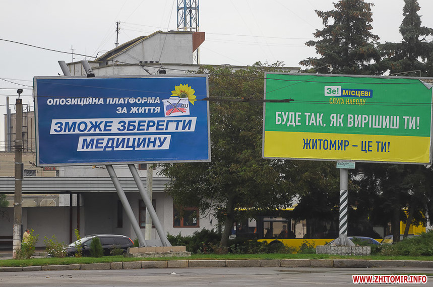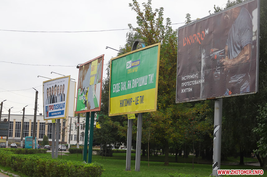 Як повідомляв Житомир.info, реклама потенційних кандидатів заполонила центр Житомира ще на початку серпня 2020 року. З білбордів та сітілайтів потенційні кандидати хвалилися здобутками і давали поради.