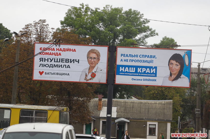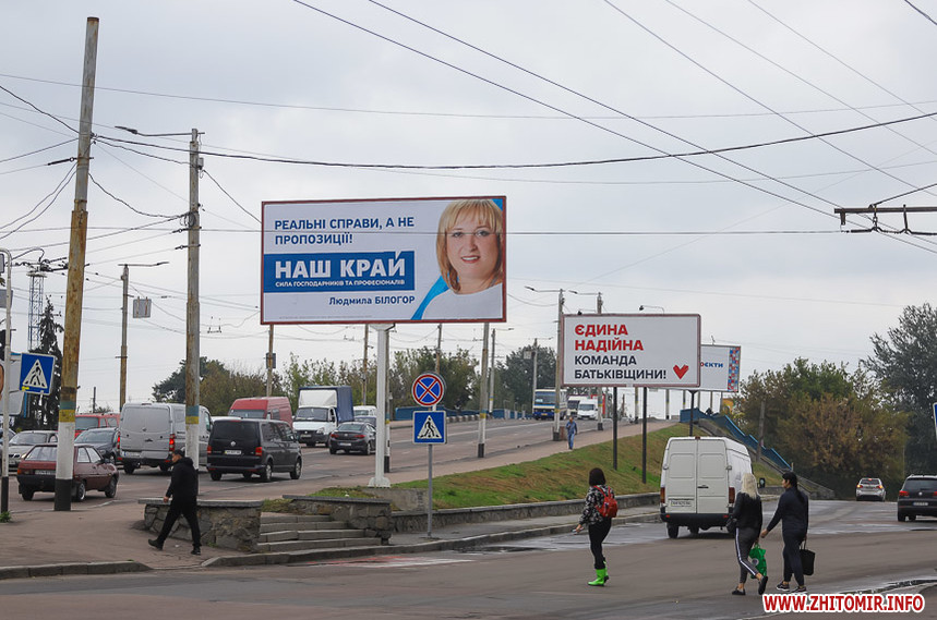 Вулиці Житомира рясніють політичною рекламою. Численні білборди, сітілайти та агітаційні намети не дають забути, що чергові місцеві вибори вже скоро – 25 жовтня.