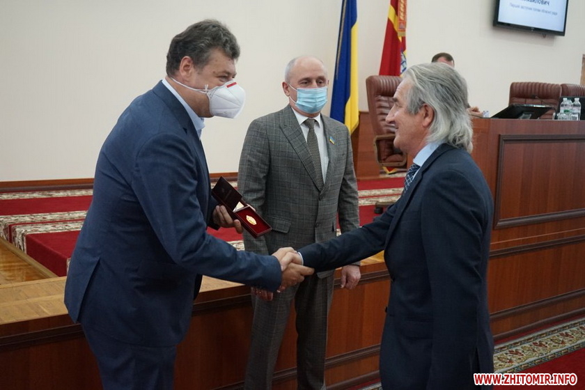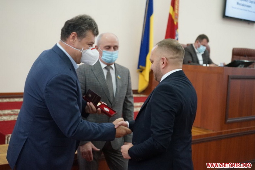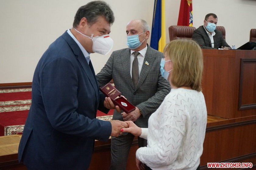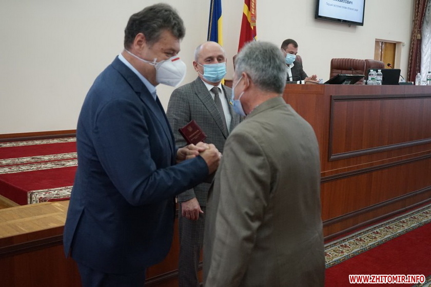 Водночас пленарне засідання почалося з вручення державних нагород. Зокрема, вручили нагороди відповідно до указу президента про відзначення з нагоди Дня медичного працівника, де звання «Заслужений лікар України» отримав депутат облради, керівник Житомирської районної лікарні Тарас Собко, з нагоди Дня незалежності України, де серед шести нагороджених – троє представників «Житомирської політехніки», з нагоди Дня Конституції України, де з п’яти нагороджених – двоє з «Житомирської політехніки».