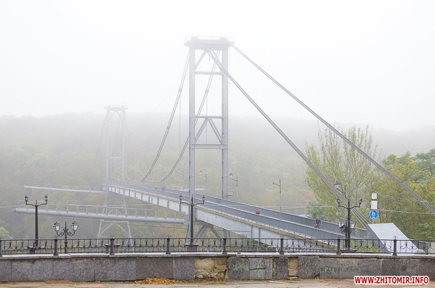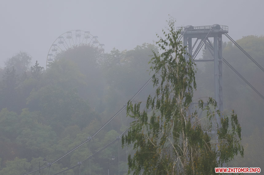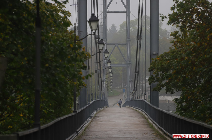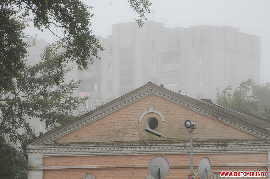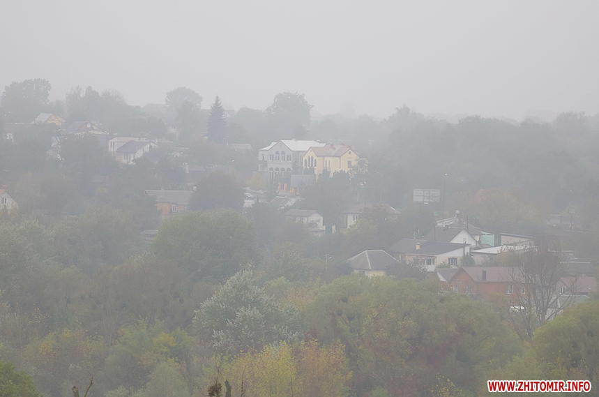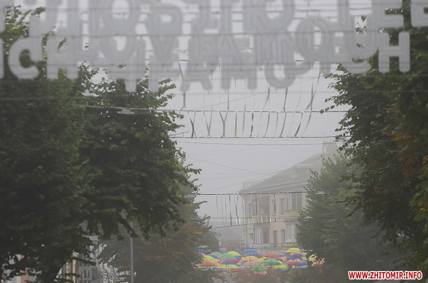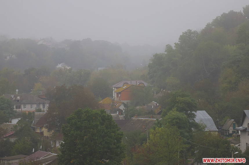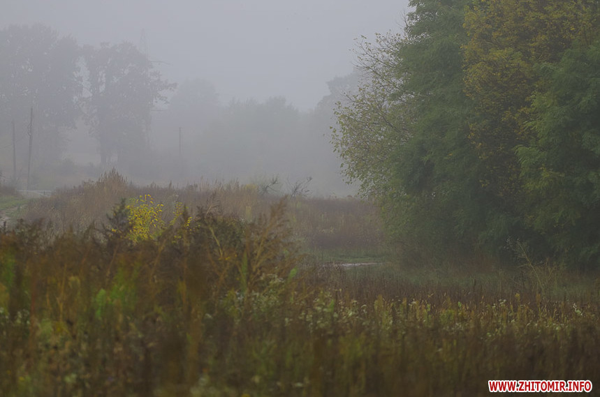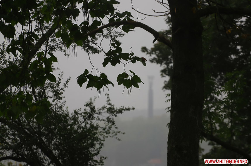 Осінній ранок 8 жовтня зустрів житомирян туманом. Сіро-прозора вуаль закутала дерева й будівлі, заслонила обрій. Імла не відступала майже до опівдня та почала «танути», коли надворі задощило. Найдовше туман протримався над річкою і за мостом у Шодуарівському парку.