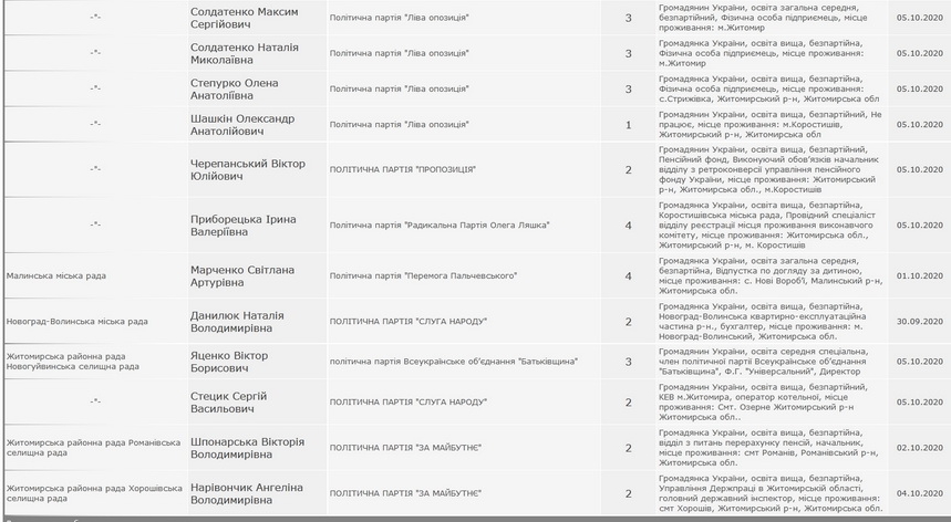 Нагадаємо, Житомир.info зробив аналіз партійних списків кандидатів в депутати Житомирської міської ради від 16 партій: частина 1, частина 2 та частина 3. Також ми проаналізували списки кандидатів в депутати Житомирської обласної ради – частина 1 та частина 2 і надавали інформацію про 13 кандидатів, які балотуються в мери Житомира на виборах 2020 року.