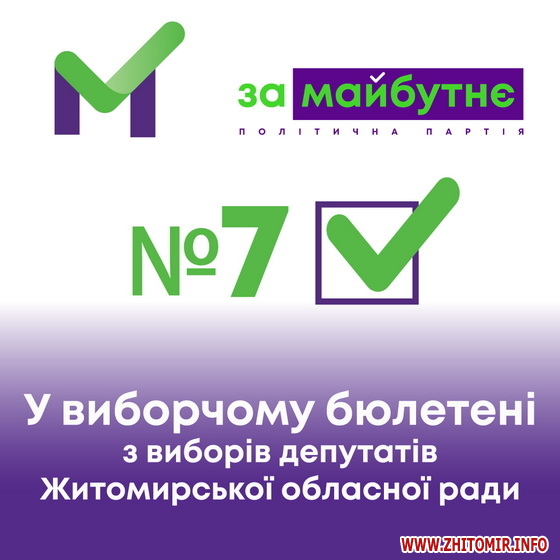 Віктор Развадовський веде команду далі вперед! Тому підтримай 25 жовтня на місцевих виборах політичну партію «За Майбутнє» - номер 7 у виборчому бюлетені до Житомирської обласної ради.