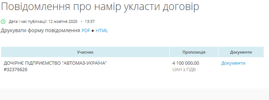 Про це йдеться у закупівлі, опублікованій на ресурсі ProZorro.