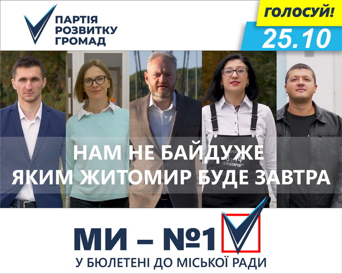 Ми прагнемо змінити на краще світ навколо – свій двір, свою вулицю, свій район, своє місто. Такою є людська природа – ми хочемо жити у комфортному та безпечному середовищі за чесними правилами. Але прагнень замало – потрібно діяти. Йти та змінювати Житомир самому або довірити це тим, кому, як і тобі, не байдуже, яким Житомир буде завтра.