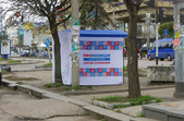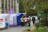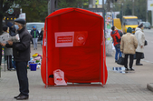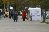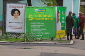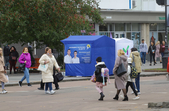 У деяких місцях палатки різних політсил розгортають по сусідству – майже впритул одна до одної. Жодного перехожого агітатори, що працюють у них, не пропускають без газет чи буклетів.