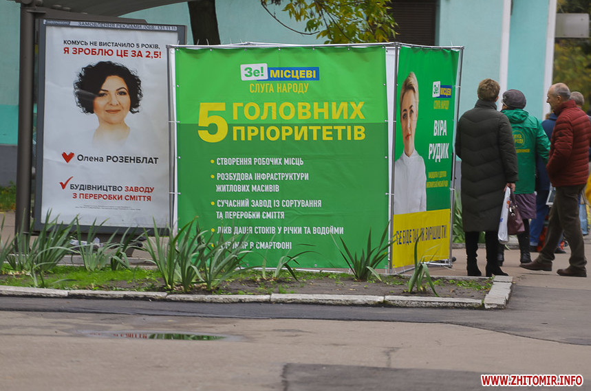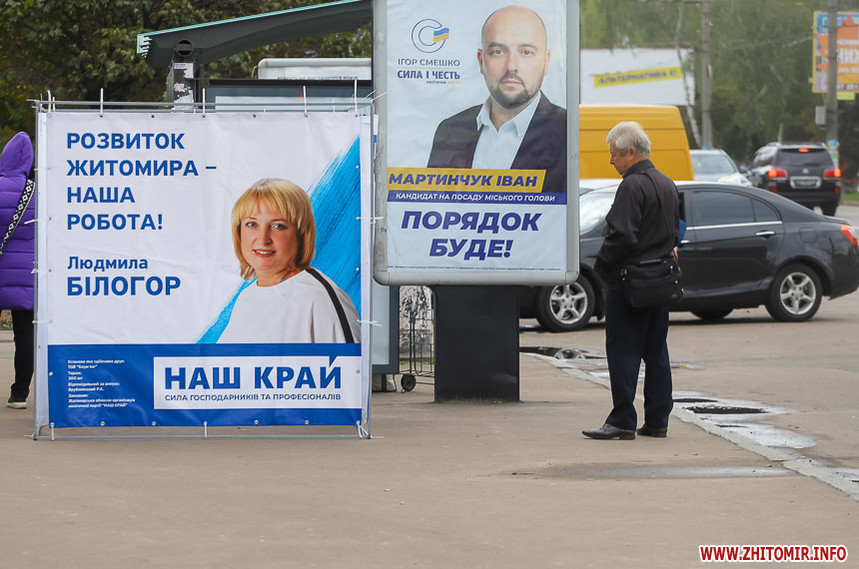Вулиці Житомира вже упродовж кількох місяців рясніють політичною рекламою. І чим ближче до дня голосування, тим активніша агітація: окрім білбордів та сітілайтів, місто заполонили намети політичних партій і кандидатів, нагадуючи, що 25 жовтня вже близько.