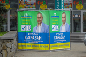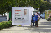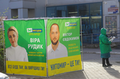Окрім наметів з друкованою продукцією про кандидатів і політичні сили, на вулицях встановлюють агітаційні куби. Плакатами з політичною рекламою «прикрашають» також автомобілі.