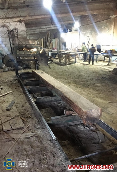 «Бердичівською місцевою прокуратурою здійснюється процесуальне керівництво досудовим розслідуванням у кримінальному провадженні за фактом заволодіння лісовими ресурсами шляхом зловживання службовим становищем, за попередньою змовою групою осіб (ч.3 ст. 191 КК України). За даними слідства, в одному із сіл Бердичівського району, у приміщенні колишньої тваринницької ферми обладнано пилораму, на якій місцевий підприємець спільно з іншими фігурантами справи займалися переробкою та збутом незаконно здобутої деревини. У подальшому виготовлену лісопродукцію, через низку фіктивно створених суб’єктів господарювання, із використанням підробленої документації, ділки реалізовували у різні області України та за кордон», - йдеться у повідомленні.