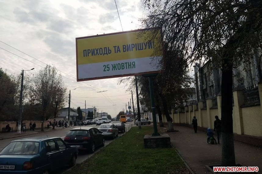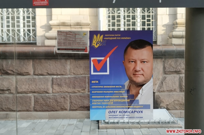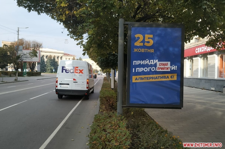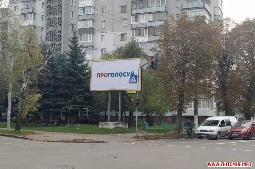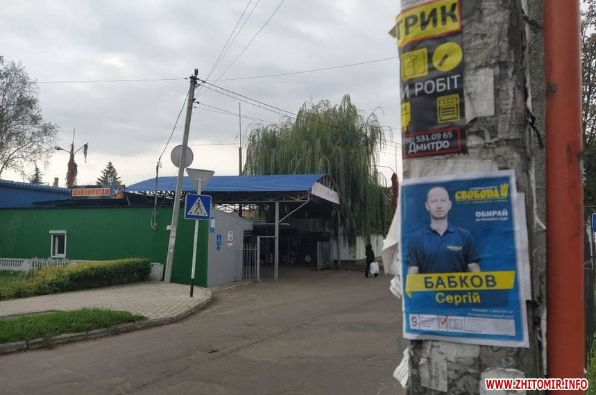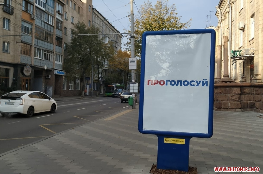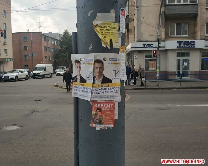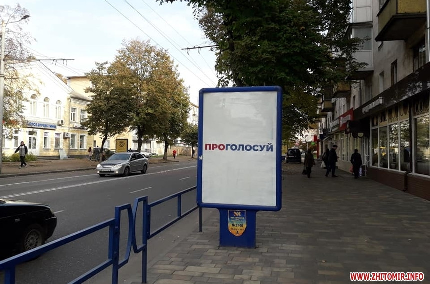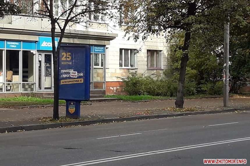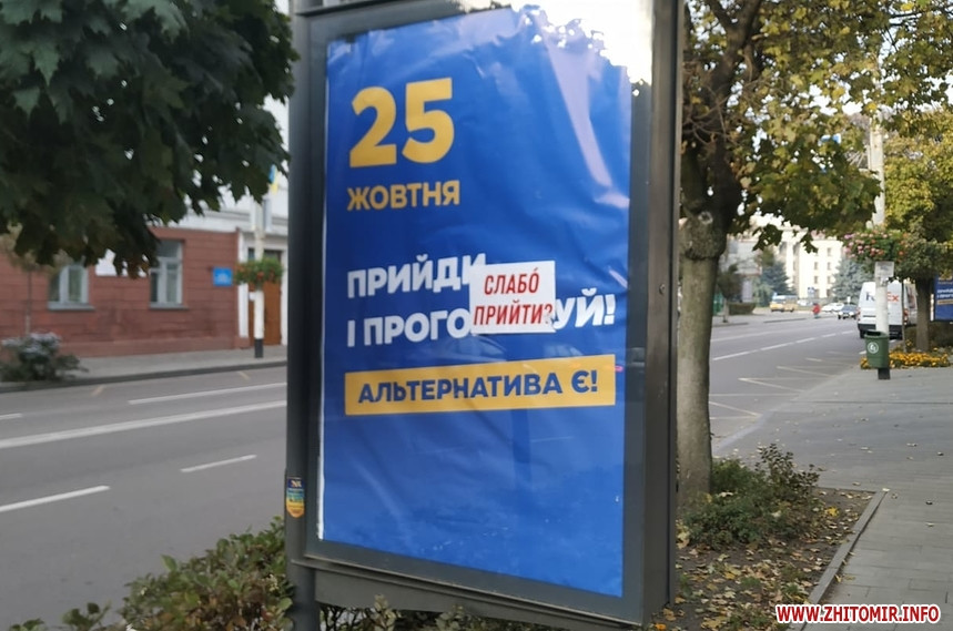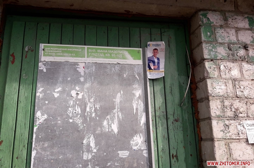 Попри вимоги закону, 24 жовтня, у «день тиші» перед днем голосування на місцевих виборах, у Житомирі на деяких електроопорах, інформаційних дошках біля під’їздів будинків, а також на дверях продовжують висіти агітаційні матеріали за кандидатів та партії. Близько півдня 24 жовтня такі «агітки» читачі помітили у багатоквартирних будинках на вулиці Івана Мазепи.