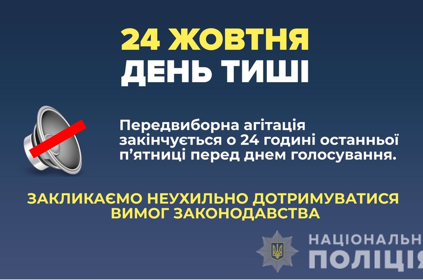 «Стаття 54 Закону України «Про місцеві вибори» чітко визначає, що «передвиборна агітація закінчується о 24 годині останньої п’ятниці перед днем голосування», – інформує поліція.