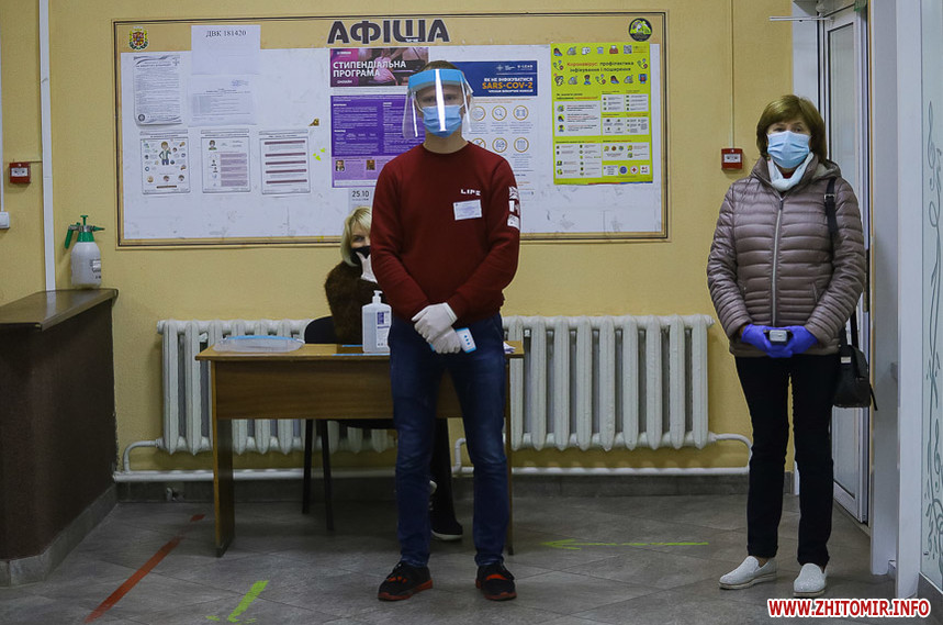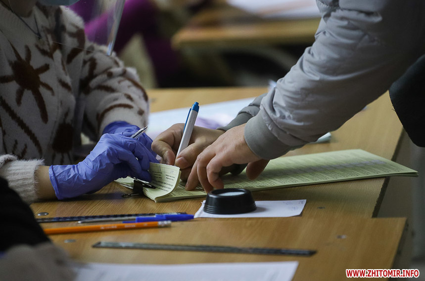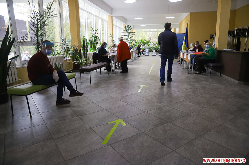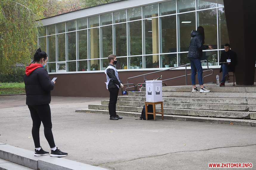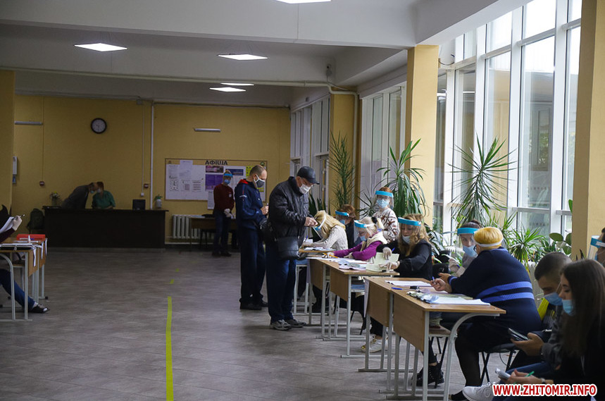Фотокореспондентка Житомир.info перебувала на дільниці близько години: з 9:20 до 10:20. За її спостереженнями, у цей період біля входу на виборчу дільницю була невелика черга, оскільки всередину пускали не всіх одразу. Однак черга рухалася доволі швидко.