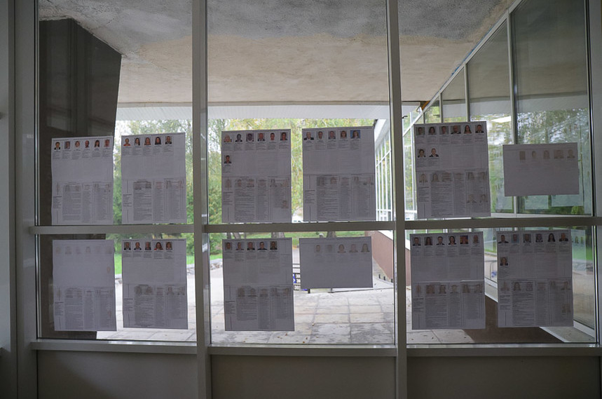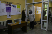 Біля входу у фойє розміщені інформаційні плакати, на дільниці чотири кабінки для голосування.