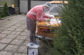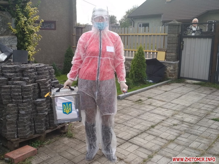 Про це Житомир.info розповіла читачка Ірина та надала фото представниці ДВК у захисному костюмі.