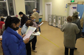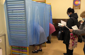 Після 17:00 у Житомирі перед входом до однієї з виборчих дільниць на Корбутівці сформувались черги з кількох десятків виборців, які чекають на можливість здійснити своє волевиявлення.