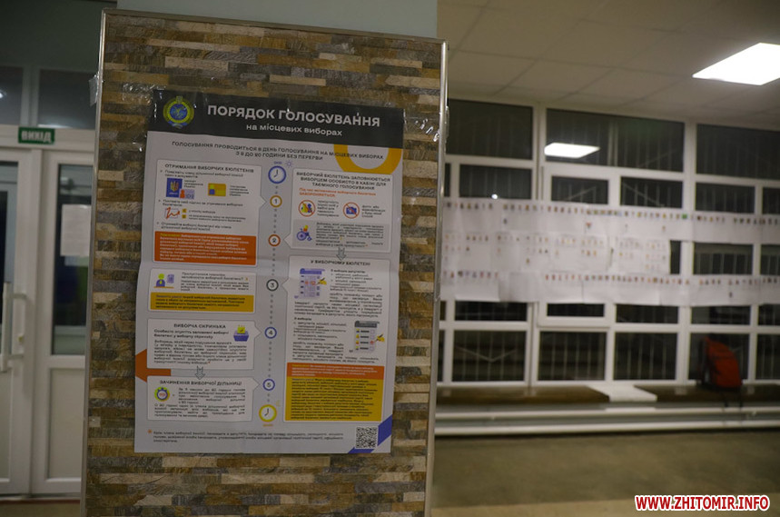 Нагадаємо, за попередніми підрахунками, явка по Житомиру на місцевих виборах 2020 року склала 28,8 %. Житомиряни на місцевих виборах 25 жовтня 2020 року отримають чотири бюлетені для голосування: за міського голову, за депутатів міської та обласної рад і за депутатів Житомирської районної ради. Голова Житомирської міської ТВК прогнозувала, що перші протоколи з дільниць привезуть не раніше 4-5 години ранку.