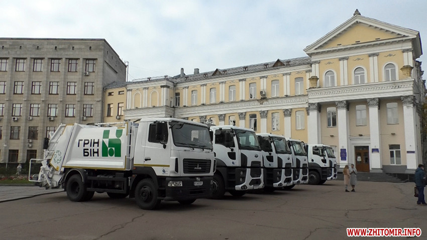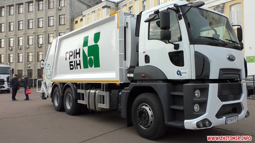 «Сьогодні 27 жовтня управління житлового господарства розпочало конкурс на визначення перевізника у Житомирі. Як ви знаєте, у Житомирі щорічно збирається 700 тисяч кубометрів сміття, у місті 562 сміттєзбірних майданчиків, 2 450 контейнерного парку, тому таке місто, як Житомир, все-таки потребує нової техніки та іншого підходу до перевезення сміття. Тому сьогодні, враховуючи наявність конкурсу, один з перевізників, який вийшов на конкурс, а їх на конкурсі п'ятеро, пропонує техніку, яку ми бачимо» - говорить Сергій Кондратюк.