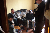 Втім після того, як чоловіка вивели з квартири, він погодився впустити всередину представників поліції. Виявилося, що у квартирі перебував ще один чоловік та жінка, яка тримала на руках цуценя. Вона стверджувала, що собака сама вилізла у вікно.
