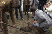 На висадження алеї пам’яті запросили маму Сабіни Галицької, військовослужбовиці 10-ї окремої гірсько-штурмової бригади Збройних сил України, яка загинула в лютому 2018 року від пострілу окупаційних військ по евакуаційній машині в Луганській області.