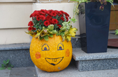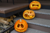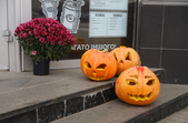 Деякі з пузатих гарбузів злісно «регочуть», інші – мило усміхаються та мають «зачіску» з осінніх хризантем. Є й такі, що ховають «обличчя» під захисною медичною маскою.