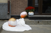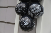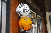 Подекуди компанію гарбузам складають моторошні скелети, таємничі привиди і підступні кажани. Вхід до закладів причепурили і повітряними кульками з «жахливими» принтами.