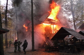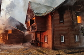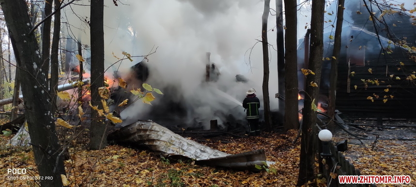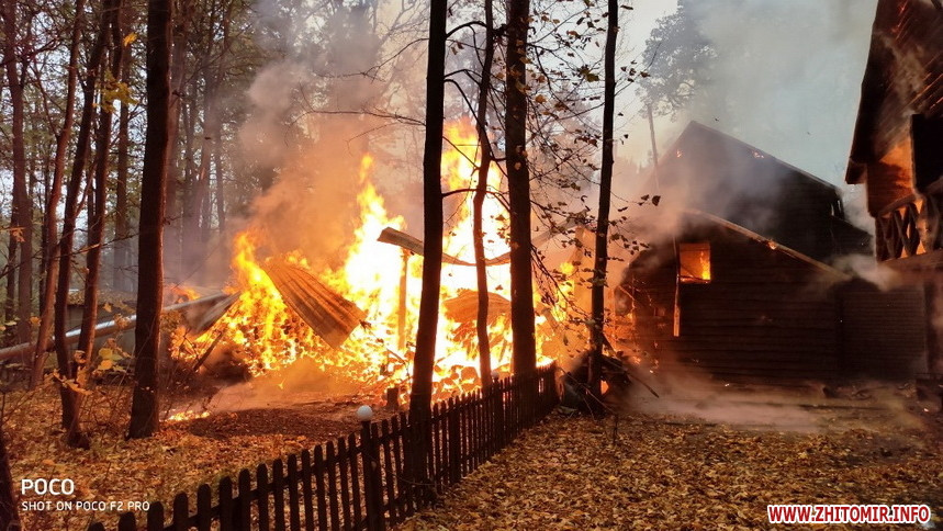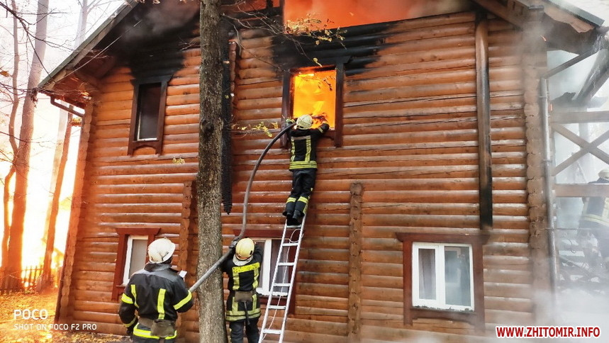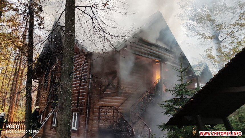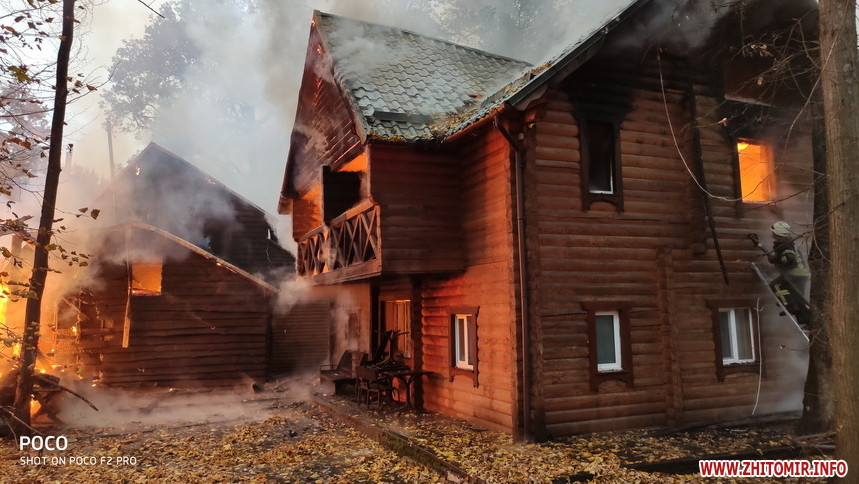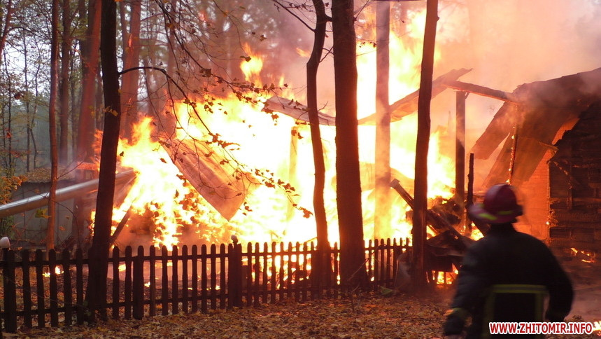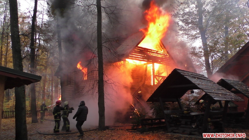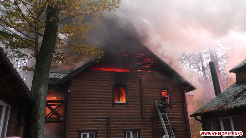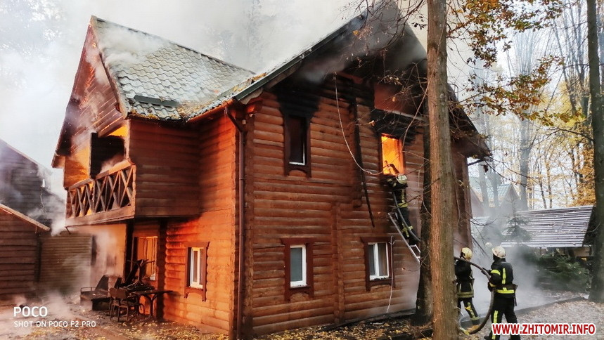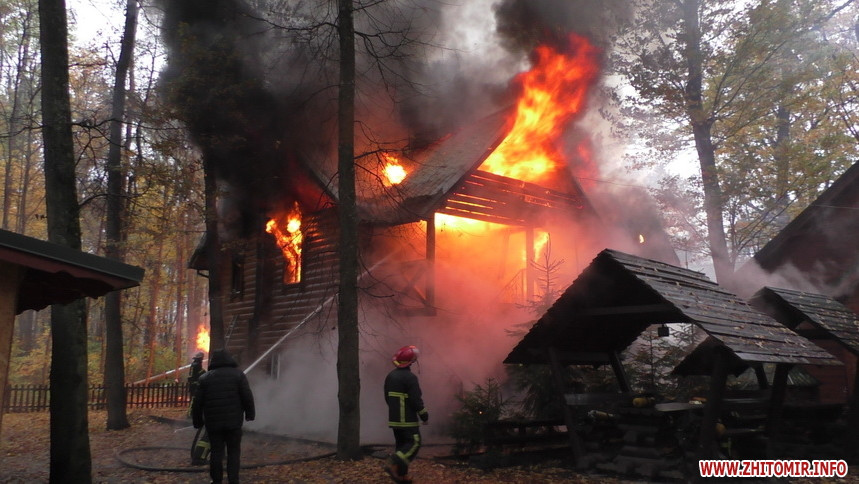«31 жовтня о 14:41 по лінії «101» надійшла інформація, що поблизу с. Оліївка Житомирського району на території готельно-ресторанного комплексу «Дубки» виникла пожежа покрівлі двоповерхової будівлі з подальшим розповсюдженням на покрівлю поруч розташованої дерев’яної будівлі. Орієнтована площа пожежі складає 200 м кв. Попередньо жертв та постраждалих немає. Загрози розповсюдження немає. О 15:50 пожежу локалізовано. Наразі тривають заходи щодо її ліквідації», - йдеться у повідомленні.